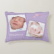 A beautiful, customizable pillow featuring two precious photo spots to celebrate a new baby's arrival. The lavender background is accented with sweet pink hearts and space to personalize the baby's name. It’s a perfect keepsake and decorative accent for a nursery or child’s room.