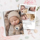 A simple birth announcement featuring your newborn's photo with name and birth stats in a stylish white script. On the back, add 3 additional pictures and a personalised message. Just click the edit/personalise button to customise this design.