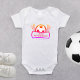 All soccer / football fans, rejoice! It's time to welcome your littlest team member. Easy to customise with your family name. Featuring a soccer ball logo and text: "Team (family name), newest recruit". Ideal as a gift for a baby shower or newborn!