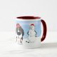 Unique Newfoundland Christmas design. Newfie with a bit of snow on his nose and a pool of drool at his paws. Irritated snowman looks on. To ward off the cold the Newfoundland has on a scarf and hat that are the colours of his country.