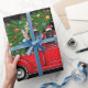 Newfoundland dog christmas on red car truck gift wrapping paper