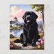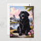 Send a touch of countryside charm with this beautiful Newfoundland postcard. Featuring a black Newfoundland dog sitting beside a peaceful lake with a picturesque cottage, colorful wildflowers, and mountain scenery in the background, this Newfoundland postcard perfectly captures the calm and loyal spirit of the breed. Ideal for sending greetings, collecting, or framing as a keepsake, this Newfoundland postcard is a wonderful choice for dog lovers and especially those who adore the Newfoundland dog.