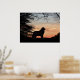 Beautiful silhouette of a Newfoundland over looking the valley in the sunset.