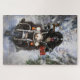 Newfoundland Dog Riding Motorcycle Christmas Jigsaw Puzzle