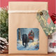 Newfoundland Dog Snowy Sleigh Ride Christmas Square Sticker
