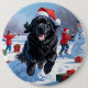 Newfoundland Running in Snow with Christmas Hat 6 Cm Round Badge