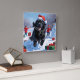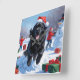 Newfoundland Running in Snow with Christmas Hat Square Wall Clock