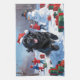 Newfoundland Running in Snow with Christmas Hat Tea Towel