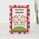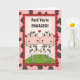 MOO! Colourful Western engagement congratulations card for a special couple with a funny sense of cow humour! From both, from us, from the group. Or just from you! Card shows two cute cartoon, spotted, black and white cows holding hands, waving at you. One cow wears a flower behind her ear. A cute heifer. Let's just call the other cow a bull. Little red hearts float in the air. A "cowhide print" frame. Play on words. Cover text reads: HERD YOU'RE ENGAGED! Inside text reads: YOU TWO MOO MAKE A LOVELY COUPLE! CONGRATULATIONS! Personalise or customise. With a little help from my friends at www.scrappindoodles.com. From She Wolf Medicine.