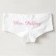 For the bride's trousseau and the Newly Weds on their Honeymoon, cute boyshorts panties in white cotton with Mrs. and the bride's new last name in pink that can be changed to another colour : just married