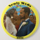 Newly Weds is the message this Round Button announces to the world and this button can be customised. Replace the image with your own couple's image, and add your message, name, and date. These attractive buttons let you do more than just express a political opinion. Since you can add your text you can express just about anything you can think of. Start creating amazing flair today! Available in 5 sizes from 1.25 inches to 6 inches in diameter and covered with scratch and UV-resistant Mylar. Square buttons are available too, made in the U.S.A.