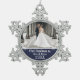 Newlywed 1st Christmas Photo Navy Blue Snowflakes Snowflake Pewter Christmas Ornament