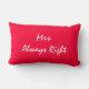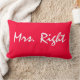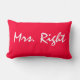 Mrs. Right bedroom decorative pillow. One side says "Mrs. Right" The opposite side says "Mrs. Always Right". This pillow comes in red and white.