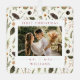 Newlywed Boho Christmas Botanical Photo Metal Ornament