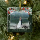 Newlywed Christmas Photo Watercolor Holly Green Ceramic Ornament