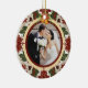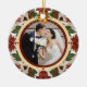 Celebrate your first Christmas as a married couple with this beautifully designed ornament. Featuring a romantic wedding photo framed by festive holly and bell accents, this keepsake radiates elegance and holiday cheer. The reverse side includes a heartfelt message, perfect for commemorating this special milestone. A timeless decoration for your tree and a cherished memory for years to come. Ideal as a gift or a personal treasure for newlyweds.