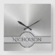 Newlywed Monogram Custom Name Metallic Texture Square Wall Clock