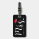 Modern elegant and trendy luggage tag for new MRS. Design features calligraphy script ''MRS'' in white color on black background followed by the new last name. Perfect gift for newlywed. Personalize with your contact details and year of the wedding. Matching MR. tag available.