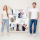 A custom keepsake blanket for newlyweds featuring a 9 photo collage of your wedding day, honeymoon, engagement, etc., and your names and wedding date in elegant serif typography. The background colour can be changed by editing in the design tool.