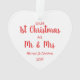 Cute Christmas ornament to commemorate your first Christmas married. On the front, your picture fills a white heart-shaped frame. On the reverse, you can personalise the expressions "1st Christmas," "Mr & Mrs" and personalise your names and year, all in seasonal red typography against a white background.