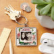 I purchased this personalized keychain for a friend. The quality of the print was excellent the keychain is lightweight but strong enough to hold your keys. I also purchased a matching compact mirror the set was beautiful together. Perfect image quality!