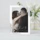 Newlyweds thank you card with a modern typography and a romantic wedding couple photo on lace effect.