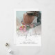 Newlyweds Photo Overlay Script Merry Christmas. Available digitally or printed. Contemporary style with modern handwritten style set script for the main header and easily personalise with your greeting and names at the bottom and replace the photo with your favourite wedding photo. A gradient is overlaid on top with the text overlaid partially.