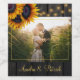 Newlyweds rustic wood sunflowers wedding photo wine label