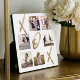 Modern and trendy newlyweds x o x photo collage plaque. Design features an X's & O's game board design with X O X displayed in a trendy faux gold brush script. The remaining game squares are filled with a photo collage to display six of your own special newlywed photos.