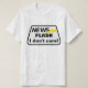 This product displays a yellow lightning bolt on the right crossing over to the words: NEWS FLASH and beneath is the message "I don't care!" All words are printed in black.