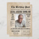 Celebrate a milestone birthday in style with this vintage newspaper birthday invitation — the perfect choice for a 80th birthday party for men! Designed with a classic newspaper layout featuring a bold headline, central photo frame, and humourous “breaking news” style filler text, this invitation brings personality and charm to any milestone celebration.