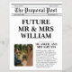 newspaper save the date card, fun black and white invite, unique photo wedding announcement, vintage newspaper wedding invitation, funny engagement photo card, retro wedding save the date, custom newspaper style invitation, wedding announcement with photo, modern funny wedding stationery, personalised headline wedding card