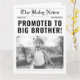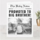 Make your big brother pregnancy announcement a funny and memorable event! Our newspaper "Promoted to big brother" card allows you to showcase photos and share the news in a unique way. With customisable templates, you can add your own personal touch to the announcement. Share the joy with family and friends with this fun and creative announcement. Shop now and start creating your own unique and personalised big brother pregnancy announcement.