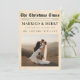 Share your love story this season with a newlywed Christmas photo card designed to look like a vintage newspaper front page. Perfect for couples celebrating their first Christmas married, this merry and married design beautifully showcases your favorite wedding photo and heartfelt holiday message. A timeless way to announce your new beginning as Mr. and Mrs. Add your names, photos, and message to make it uniquely yours. Personalize yours today.