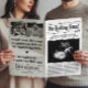 Make your pregnancy announcement unforgettable with this customisable newspaper-style design. Featuring a vintage headline, personalised due date, and baby ultrasound photo, this unique keepsake is perfect for sharing your exciting news with family and friends. Ideal for baby showers, social media reveals, or as a cherished memory for years to come.