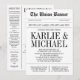 Wedding Invitation design featuring Newspaper style design. Customise for any colour combination.