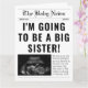 Make your big sister pregnancy announcement a funny and memorable event! Our newspaper-style design allows you to showcase photos and share the news in a unique way. With customisable templates, you can add your own personal touch to the announcement. Share the joy with family and friends with this fun and creative announcement. Shop now and start creating your own unique and personalised big sister pregnancy announcement.
