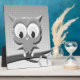 A cute little owl on a branch. Original cartoon character in black and white with newsprint effect applied to image.