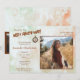 Invite guests to the new graduate and their next adventure with this invite featuring 4 photos of the grad, against an abstract green and rust background.
