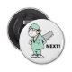 A cartoon drawing of a surgeon holding a large hand saw behind his back shouting "NEXT!"