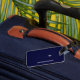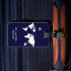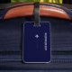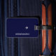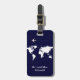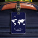 A blue (custom color) personalisable item with an airplane image, the world map and custom couple name