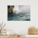 Terrific view of great Niagara Falls with a ferry and a rainbow right in the waterfalls.