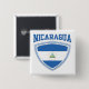 The national flag of Nicaragua is infused into a shield shape which has blue/white outlines surrounding the flag. The country name is added above the image.