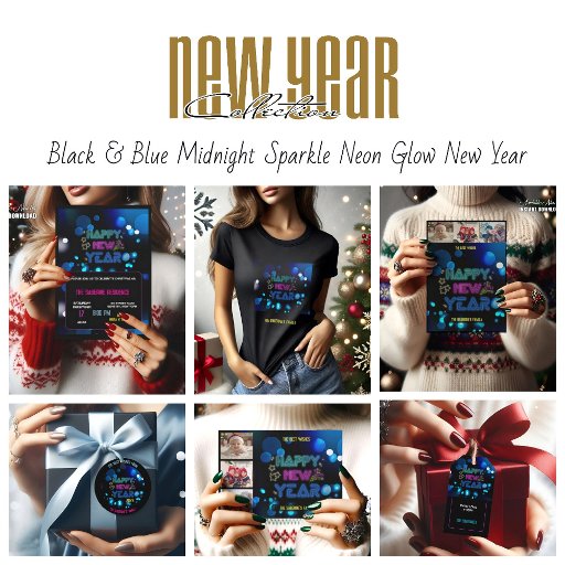 Black & Blue Midnight Sparkle Neon Glow New Year Designed by Houria Sabrine