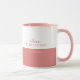 A modern and nice design for a pink and white mug... to create this elegant and personalised item you just have to add your own name and text to the templates