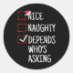 Nice Naughty Depends Who's Asking Funny Christmas Classic Round Sticker