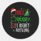 Nice Naughty I Regret Nothing Christmas List Santa Classic Round Sticker