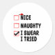 Nice Naughty I Swear I Tried Classic Round Sticker