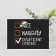 Nice Naughty Insufficient Evidence Christmas Funny Holiday Card