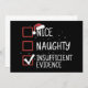 Nice Naughty Insufficient Evidence Christmas Funny Invitation